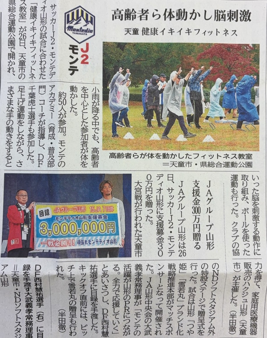 令和7年10月26日(日)に開催されました『ハクジュ健康イキイキフィットネス教室』の様子が山形新聞に掲載されました。