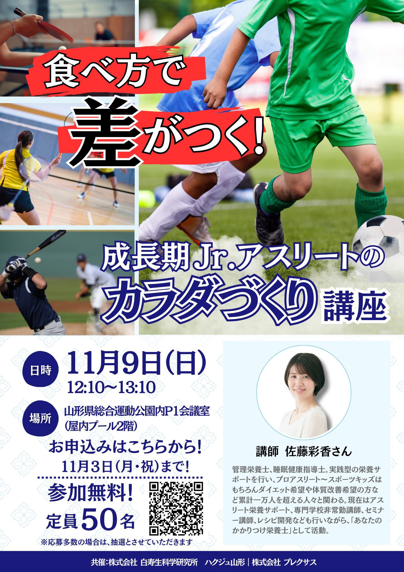 こちらをクリック!【お申込みフォーム】 11月9日(日)開催『食べ方で差がつく!成長期Jr.アスリートのカラダづくり講座』